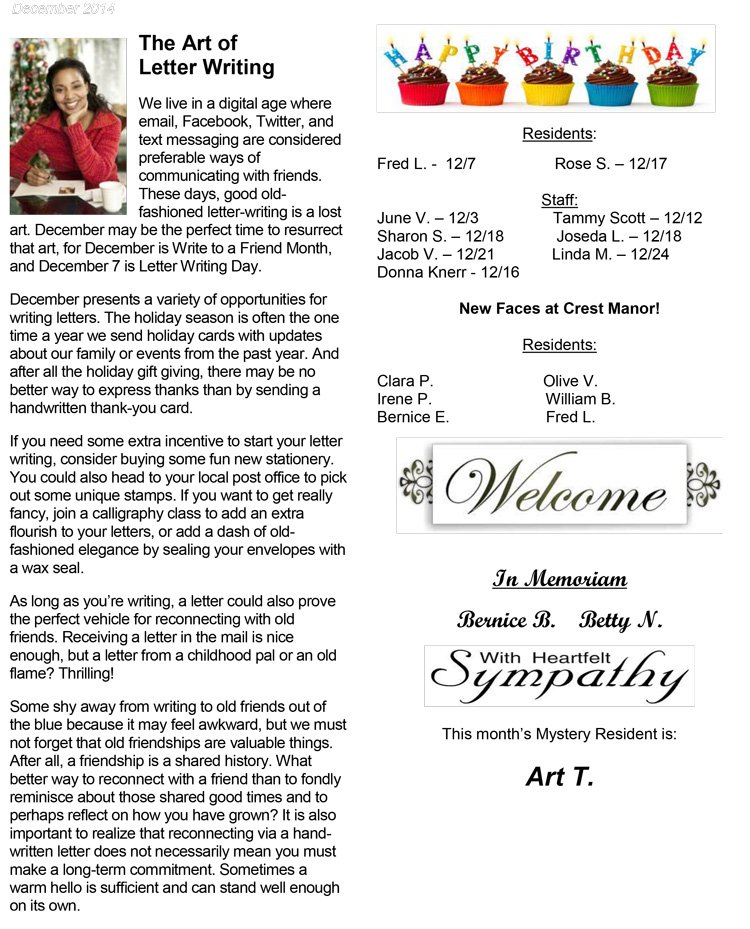The team at Crest Manor realizes that looking into Long-term Care or Short-term Rehab can be overwhelming, we would love to help ease your stress. Call today to speak with someone live, or to schedule a tour. Please call our Admissions Representative 585-223-3633. Crest Manor Living is located in Fairport, NY close to route 250, central to Perinton, Fairport and Victor NY.