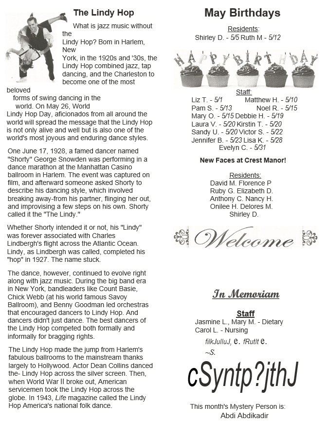You were no fool if yo.uspent the morning of April 1 st in the Activities Room - you had the pleasure of listening to the music of the Webster Senior Chorus!