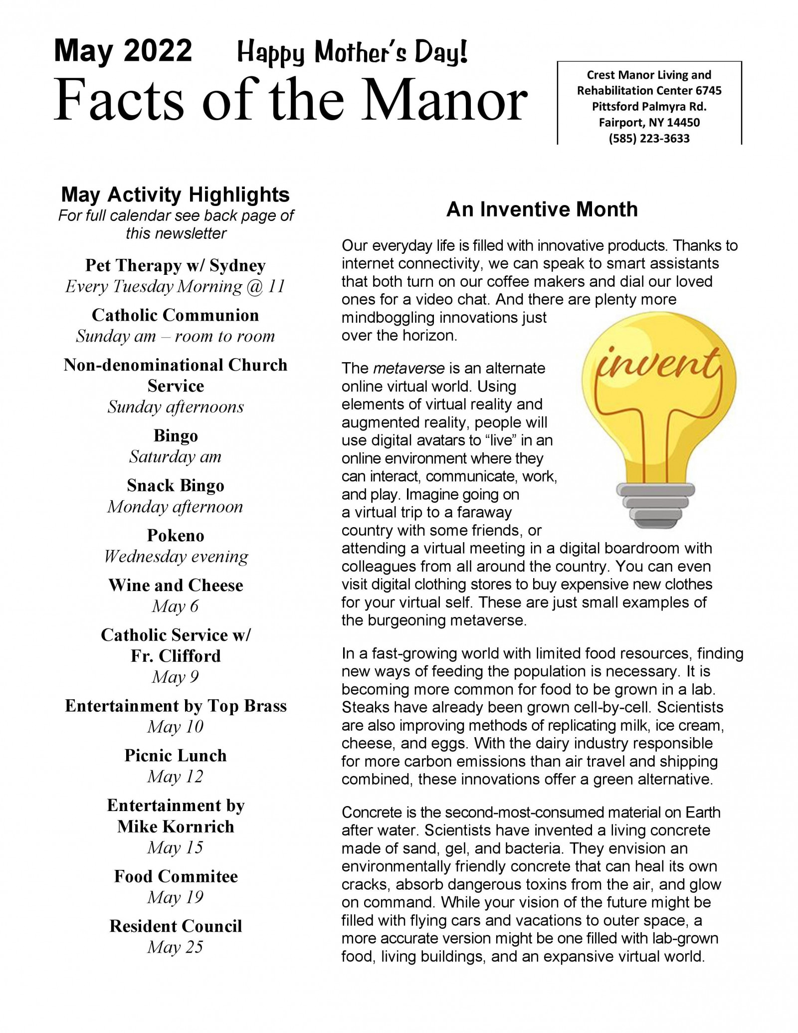 The team at Crest Manor realizes that looking into Long-term Care or Short-term Rehab can be overwhelming, we would love to help ease your stress. Call today to speak with someone live, or to schedule a tour. Please call our Admissions Representative 585-223-3633. Crest Manor Living is located in Fairport, NY close to route 250, central to Perinton, Fairport and Victor NY.